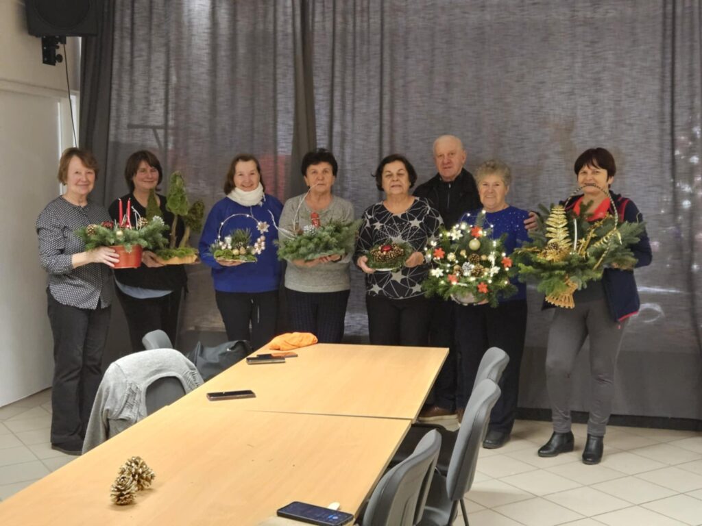 w Borkowicach na warsztatach plastycznych aby przygotować stroiki bożonarodzeniowe.