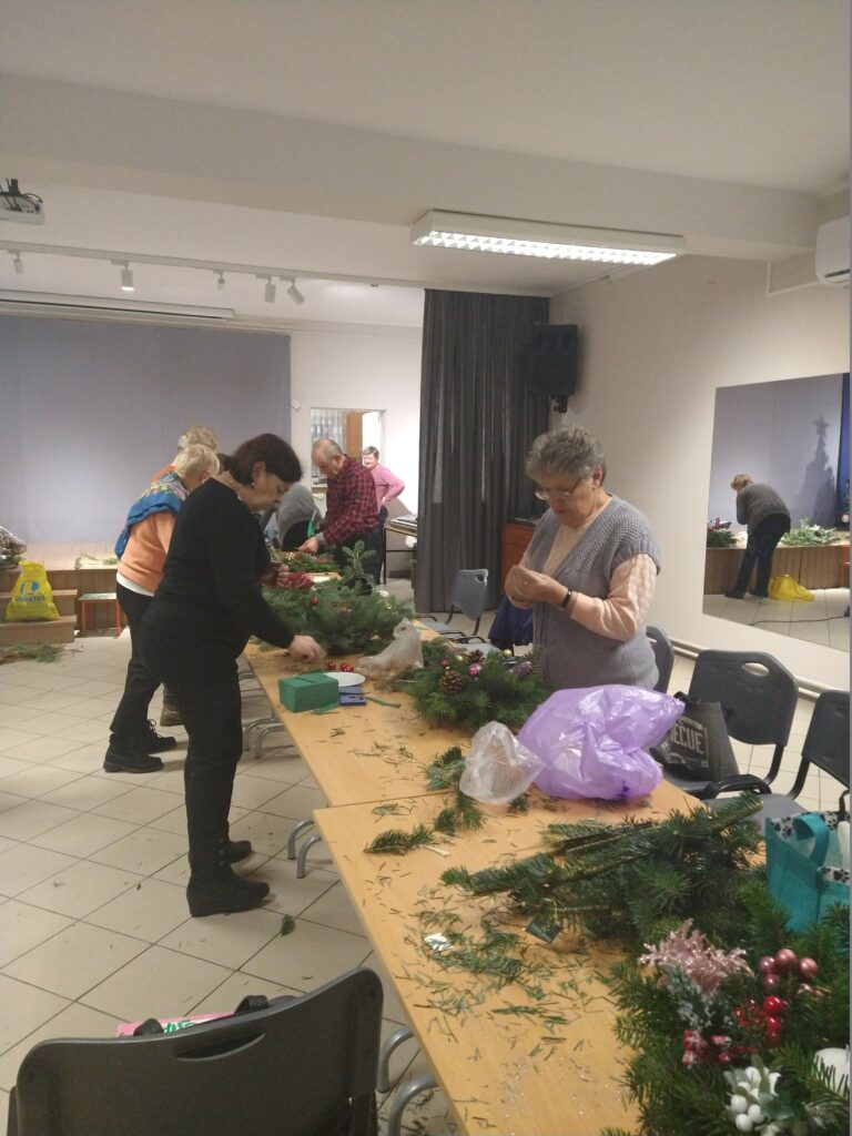 Dekoracje bożonarodzeniowe sprawiają, że możemy poczuć magię świąt. Święta Bożego Narodzenia to dobra okazja do plastycznych zabaw. Wspólne tworzenie ozdób świątecznych i choinkowych to świetna i kreatywna zabawa! W dniu 15.12.2022 roku Seniorzy z Klubu 50+ spotkali się w Gminnym Ośrodku Kultury na warsztatach z tworzenia stroików bożonarodzeniowych. Do wykonania stroików wykorzystano gałązki świerków , sosny, jodły oraz krzewów iglastych. Za podstawę stroików posłużyły gąbki florystyczne. Dekoracje, każdy z uczestników wykonywał według własnych upodobań korzystając z pomocnych rad pani Eli. Warsztaty przebiegały w miłej świątecznej atmosferze, a efekty pracy zachwyciły wszystkich niepowtarzalnością.