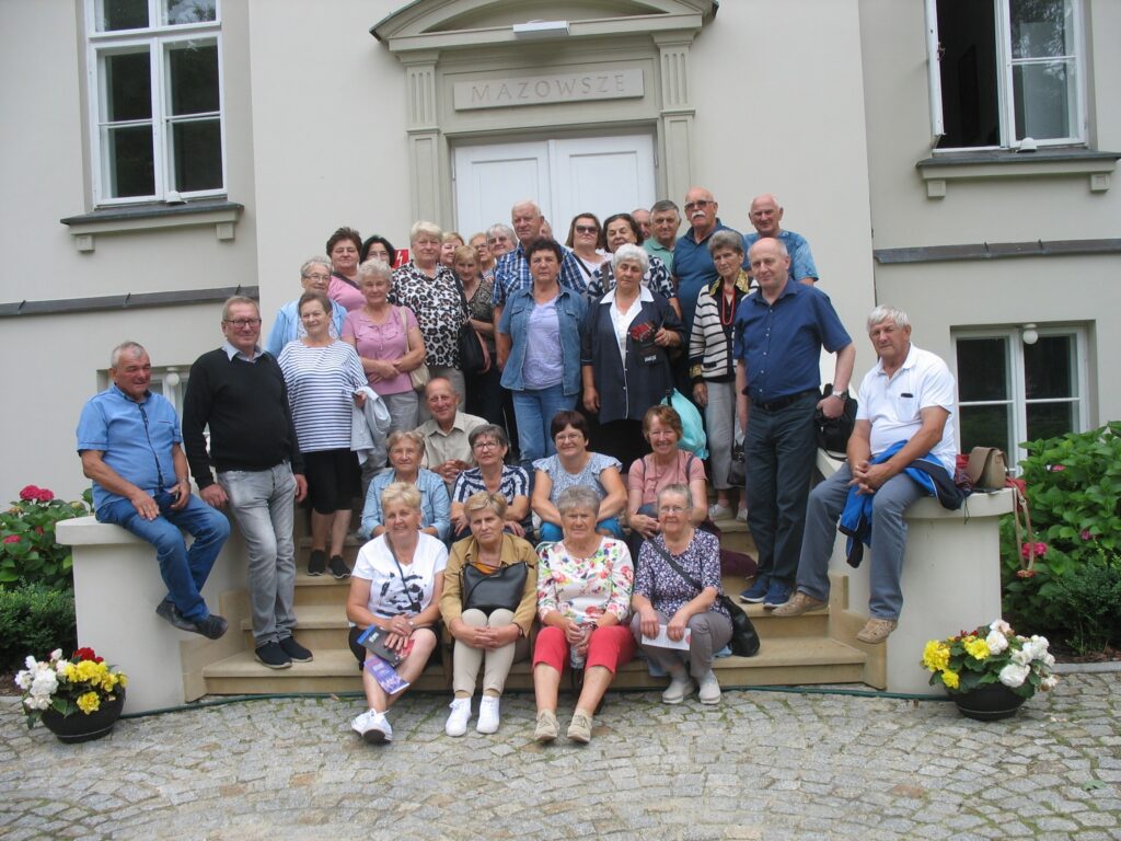 W dniu 26.07.2023 r. członkowie klubu seniora 50+ wybrali się na wycieczkę autokarową do MATECZNIKA ZESPOŁU PIEŚNI I TAŃCA MAZOWSZE W OTRĘBUSACH. Na wstępie uczestnicy spotkali się z przewodnikiem, który oprowadził grupę po Pałacu w Karolinie zapoznając z historią Zespołu Mazowsze, jego założycielami, ekspozycją pamiątek przywiezionych przez Mazowsze z podróży.